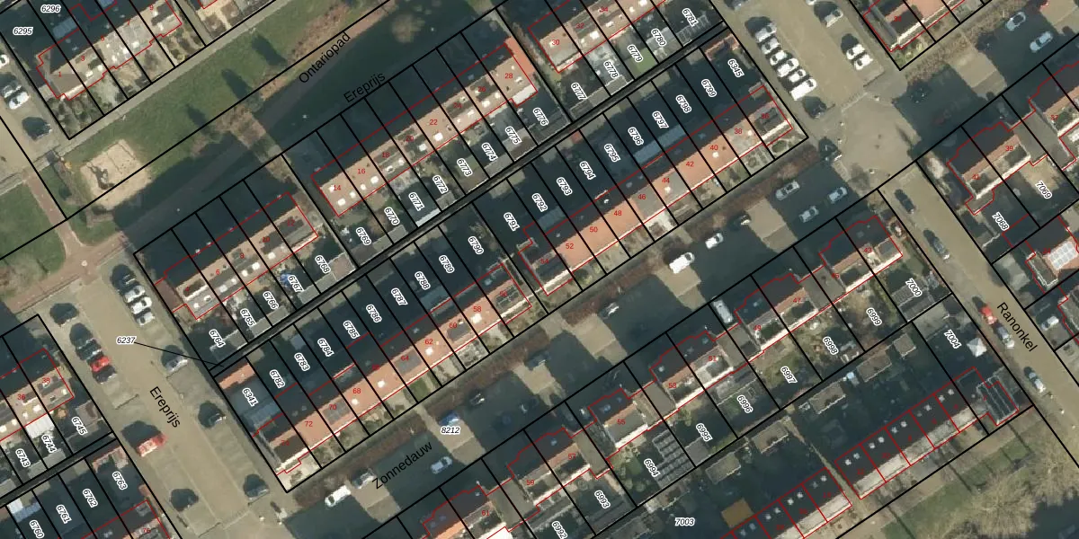Het perceel waarop Zonnedauw 54 staat heeft een oppervlakte van 195 m². Dit is een middelgroot perceel. De perceeloppervlakte wordt geregistreerd door het Kadaster. Gedetailleerde informatie over de maten van dit perceel kunt u vinden in het rapport Kadastrale kaart met maatvoering van Zonnedauw 54.