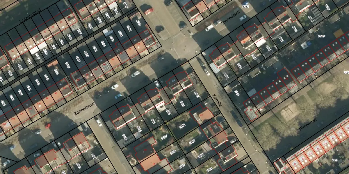 Zonnedauw 71 is gelegen op kadastraal perceel TIE00D6954. Deze kadastrale aanduiding is uniek en wordt gebruikt door het Kadaster om eigendomsrechten en andere zakelijke rechten vast te leggen. Het perceel maakt onderdeel uit van de kadastrale gemeente Tiel.