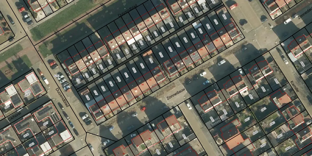 Zonnedauw 94 is gelegen op kadastraal perceel TIE00D6754. Deze kadastrale aanduiding is uniek en wordt gebruikt door het Kadaster om eigendomsrechten en andere zakelijke rechten vast te leggen. Het perceel maakt onderdeel uit van de kadastrale gemeente Tiel.