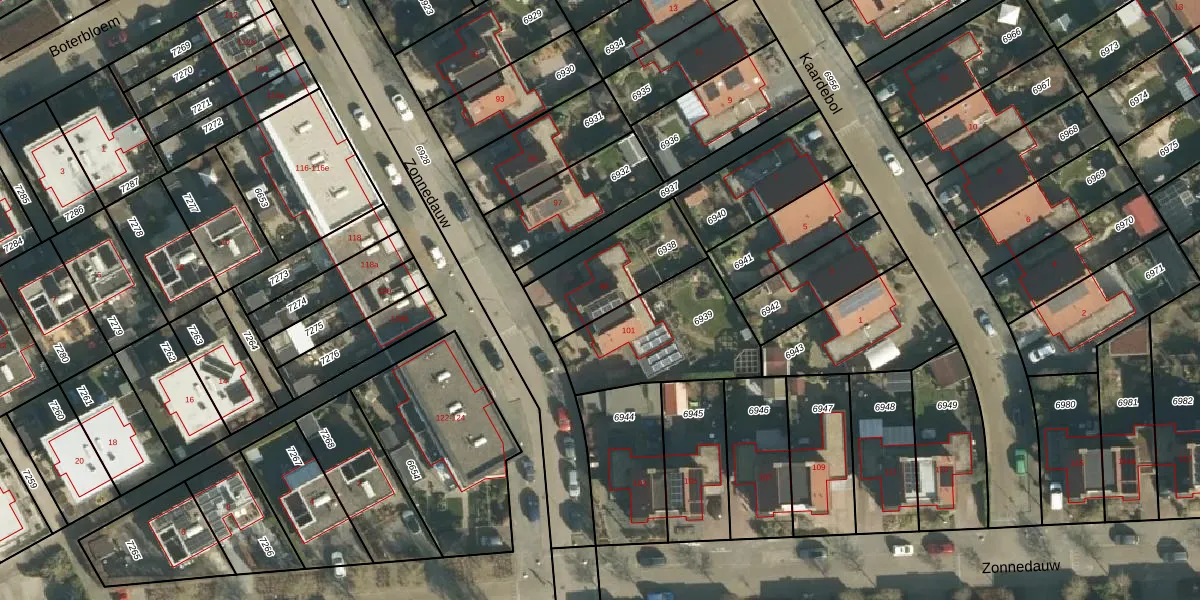Zonnedauw 99 is gelegen op kadastraal perceel TIE00D6938. Deze kadastrale aanduiding is uniek en wordt gebruikt door het Kadaster om eigendomsrechten en andere zakelijke rechten vast te leggen. Het perceel maakt onderdeel uit van de kadastrale gemeente Tiel.