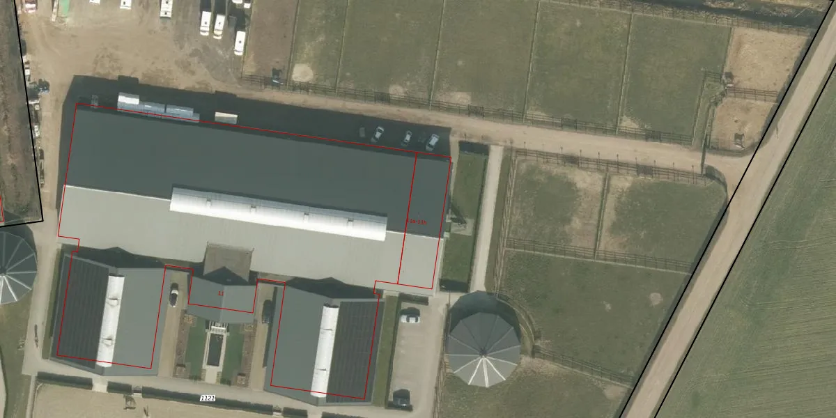 Het perceel waarop Donkerhofsteeg 11-h staat heeft een oppervlakte van 3,3 ha. Dit is een zeer groot perceel. De perceeloppervlakte wordt geregistreerd door het Kadaster. Gedetailleerde informatie over de maten van dit perceel kunt u vinden in het rapport Kadastrale kaart met maatvoering van Donkerhofsteeg 11-h.