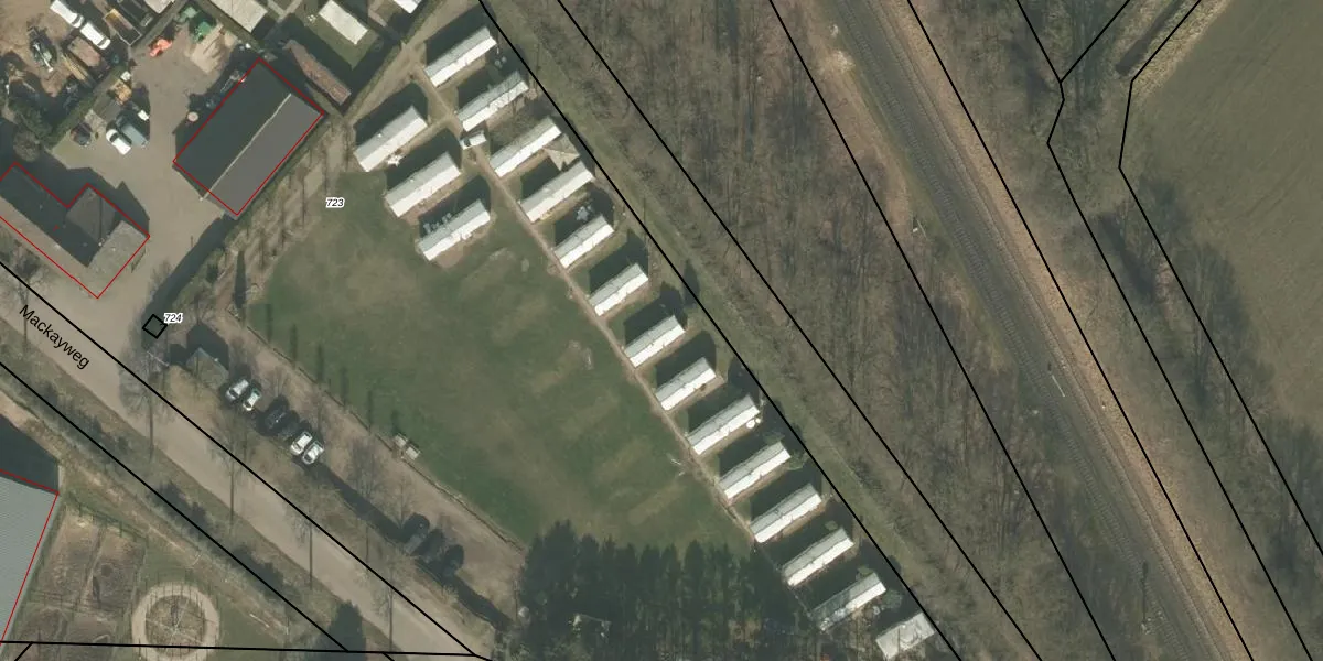 Het perceel waarop Mackayweg 7-e-7 staat heeft een oppervlakte van 1,3 ha. Dit is een zeer groot perceel. De perceeloppervlakte wordt geregistreerd door het Kadaster. Gedetailleerde informatie over de maten van dit perceel kunt u vinden in het rapport Kadastrale kaart met maatvoering van Mackayweg 7-e-7.