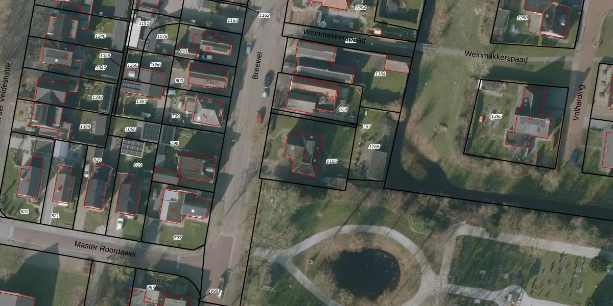 Gebruik de zoekbalk of klik op een perceel voor informatie over de adressen binnen dit perceel.
