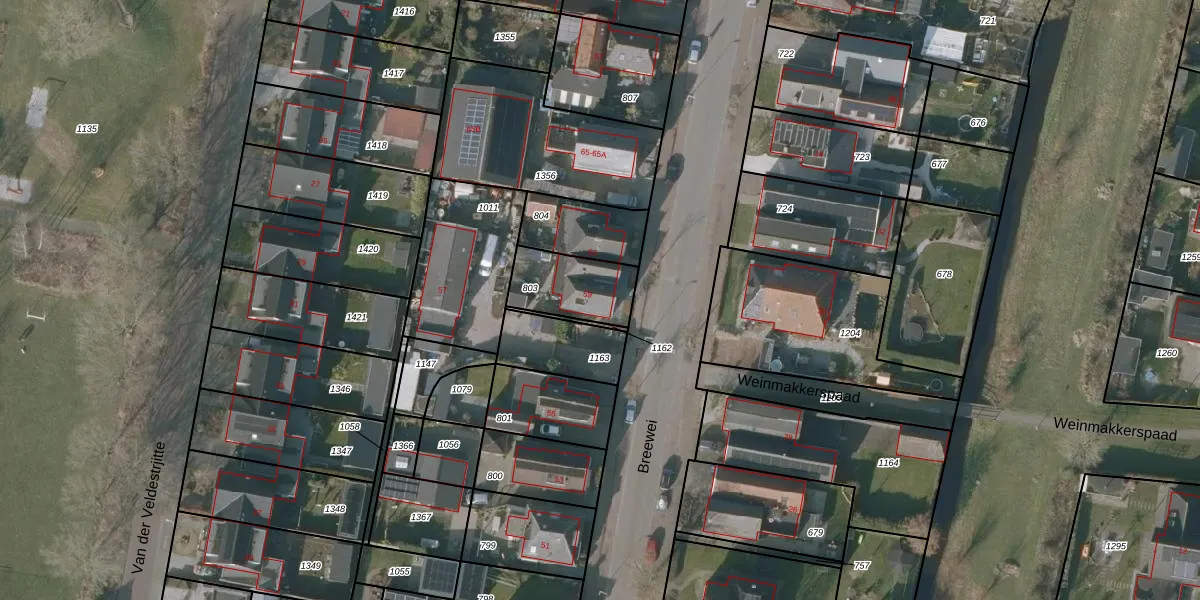 Gebruik de zoekbalk of klik op een perceel voor informatie over de adressen binnen dit perceel.
