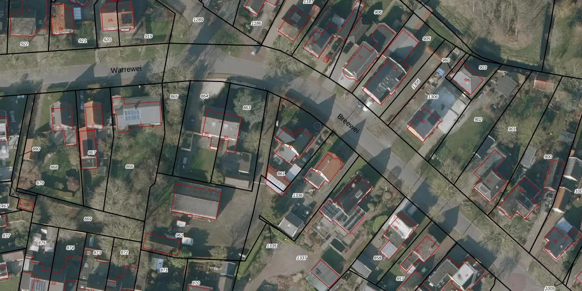 Het perceel waarop Breewei 91 staat heeft een oppervlakte van 397 m². Dit is een groot perceel. De perceeloppervlakte wordt geregistreerd door het Kadaster. Gedetailleerde informatie over de maten van dit perceel kunt u vinden in het rapport Kadastrale kaart met maatvoering van Breewei 91.