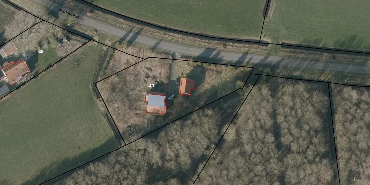 Het perceel waarop Hanebuert 8 staat heeft een oppervlakte van 2220 m². Dit is een zeer groot perceel. De perceeloppervlakte wordt geregistreerd door het Kadaster. Gedetailleerde informatie over de maten van dit perceel kunt u vinden in het rapport Kadastrale kaart met maatvoering van Hanebuert 8.