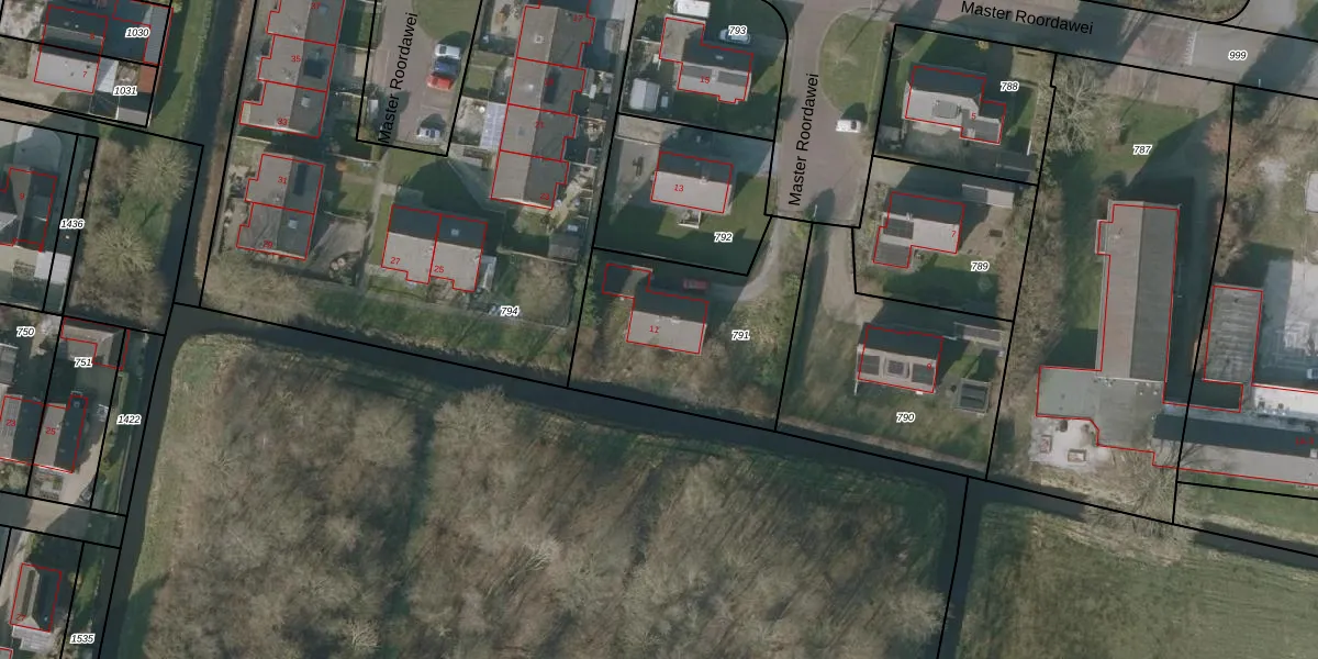 Master Roordawei 11 is gelegen op kadastraal perceel GRD00D791. Deze kadastrale aanduiding is uniek en wordt gebruikt door het Kadaster om eigendomsrechten en andere zakelijke rechten vast te leggen. Het perceel maakt onderdeel uit van de kadastrale gemeente Gorredijk.