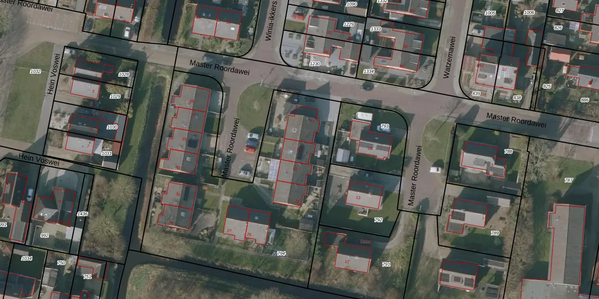 Het perceel waarop Master Roordawei 19 staat heeft een oppervlakte van 3070 m². Dit is een zeer groot perceel. De perceeloppervlakte wordt geregistreerd door het Kadaster. Gedetailleerde informatie over de maten van dit perceel kunt u vinden in het rapport Kadastrale kaart met maatvoering van Master Roordawei 19.