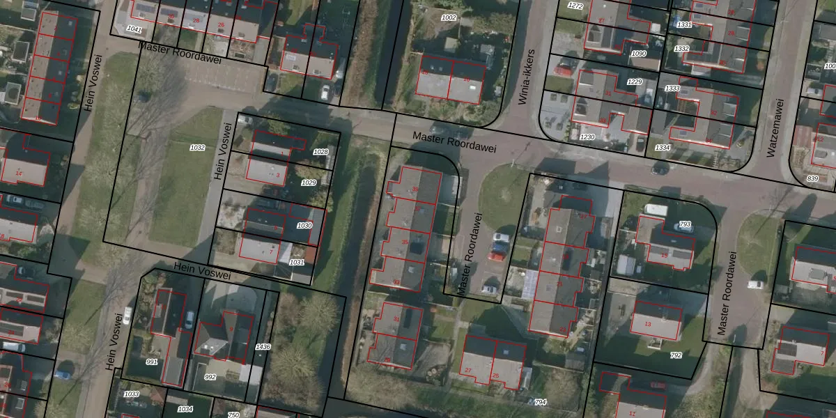 Het perceel waarop Master Roordawei 37 staat heeft een oppervlakte van 3070 m². Dit is een zeer groot perceel. De perceeloppervlakte wordt geregistreerd door het Kadaster. Gedetailleerde informatie over de maten van dit perceel kunt u vinden in het rapport Kadastrale kaart met maatvoering van Master Roordawei 37.