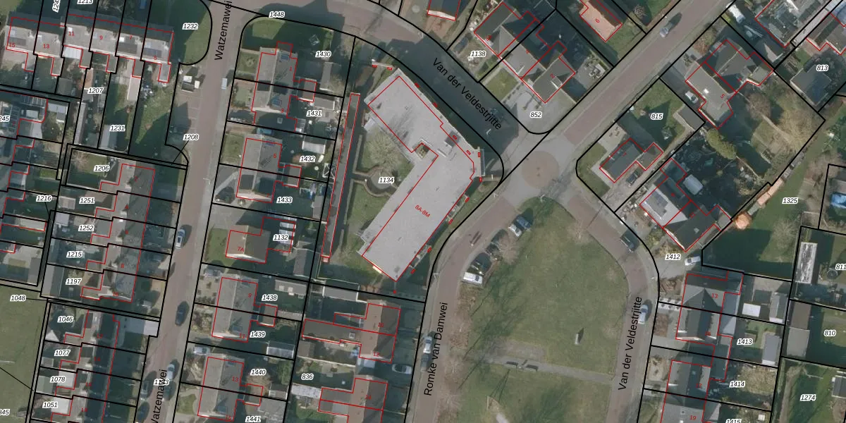 Het perceel waarop Romke van Damwei 8-A staat heeft een oppervlakte van 1718 m². Dit is een zeer groot perceel. De perceeloppervlakte wordt geregistreerd door het Kadaster. Gedetailleerde informatie over de maten van dit perceel kunt u vinden in het rapport Kadastrale kaart met maatvoering van Romke van Damwei 8-A.