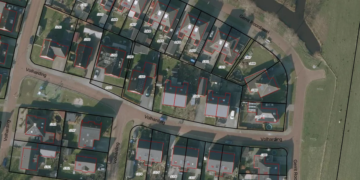 Het perceel waarop Volharding 11 staat heeft een oppervlakte van 1400 m². Dit is een zeer groot perceel. De perceeloppervlakte wordt geregistreerd door het Kadaster. Gedetailleerde informatie over de maten van dit perceel kunt u vinden in het rapport Kadastrale kaart met maatvoering van Volharding 11.