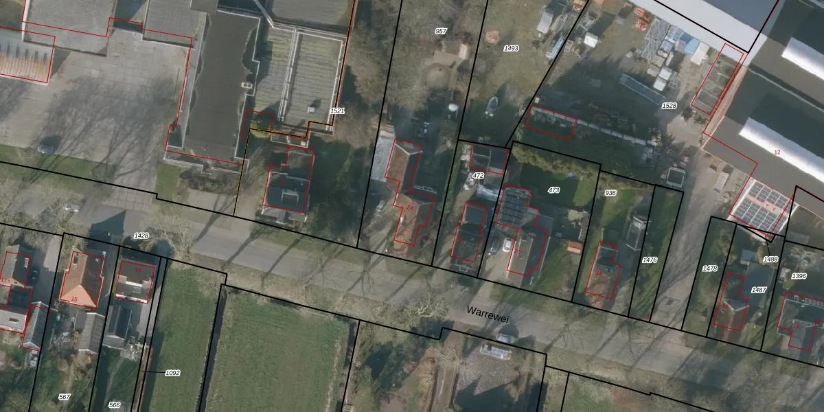 Het perceel waarop Warrewei 24 staat heeft een oppervlakte van 1996 m². Dit is een zeer groot perceel. De perceeloppervlakte wordt geregistreerd door het Kadaster. Gedetailleerde informatie over de maten van dit perceel kunt u vinden in het rapport Kadastrale kaart met maatvoering van Warrewei 24.