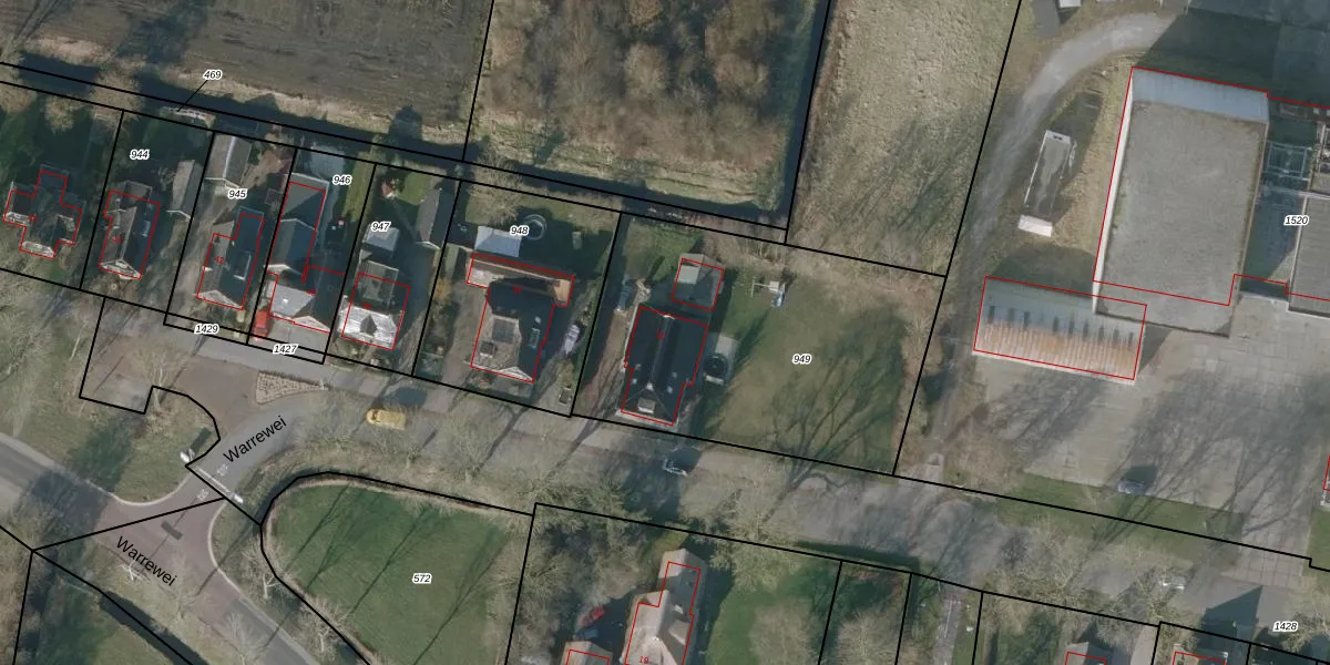 Het perceel waarop Warrewei 32 staat heeft een oppervlakte van 1540 m². Dit is een zeer groot perceel. De perceeloppervlakte wordt geregistreerd door het Kadaster. Gedetailleerde informatie over de maten van dit perceel kunt u vinden in het rapport Kadastrale kaart met maatvoering van Warrewei 32.