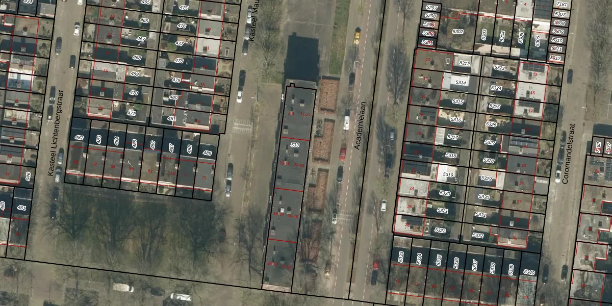 Academielaan 23 is gelegen op kadastraal perceel TBG01AB533. Deze kadastrale aanduiding is uniek en wordt gebruikt door het Kadaster om eigendomsrechten en andere zakelijke rechten vast te leggen. Het perceel maakt onderdeel uit van de kadastrale gemeente Tilburg.