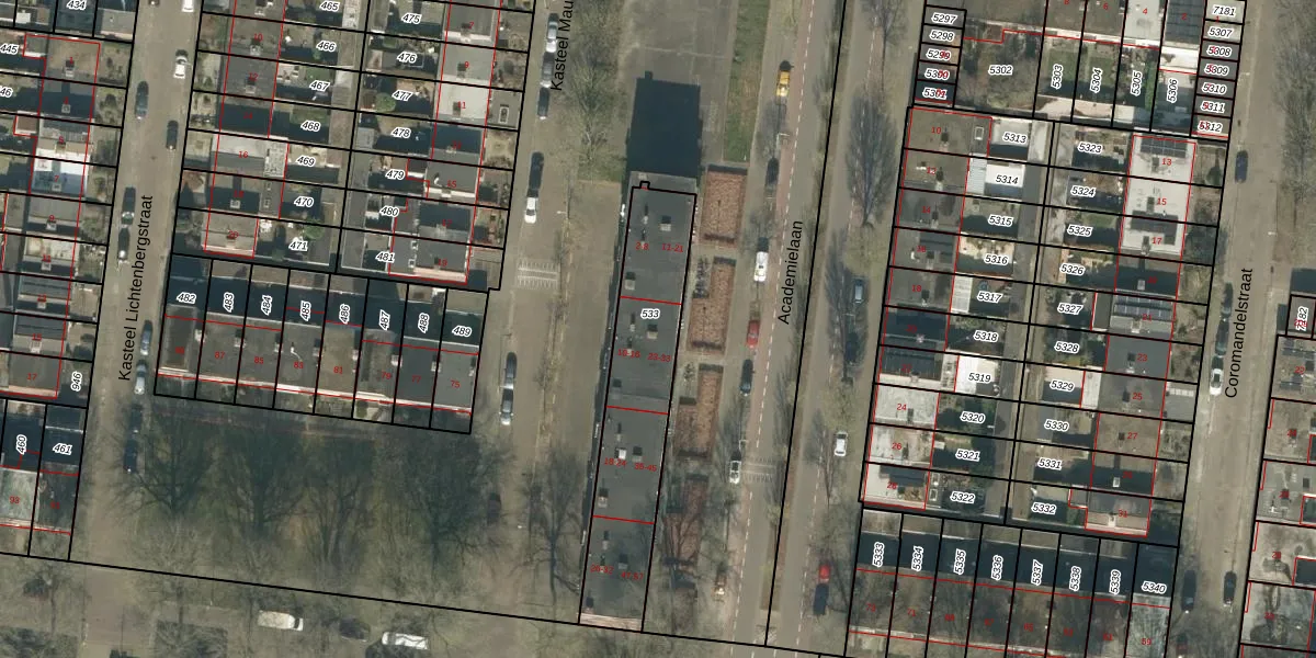 Het perceel waarop Academielaan 25 staat heeft een oppervlakte van 651 m². Dit is een groot perceel. De perceeloppervlakte wordt geregistreerd door het Kadaster. Gedetailleerde informatie over de maten van dit perceel kunt u vinden in het rapport Kadastrale kaart met maatvoering van Academielaan 25.