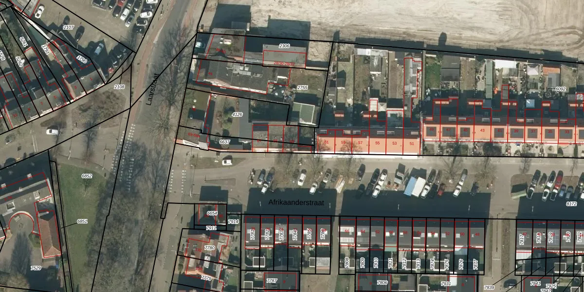 Het perceel waarop Afrikaanderstraat 63 staat heeft een oppervlakte van 213 m². Dit is een middelgroot perceel. De perceeloppervlakte wordt geregistreerd door het Kadaster. Gedetailleerde informatie over de maten van dit perceel kunt u vinden in het rapport Kadastrale kaart met maatvoering van Afrikaanderstraat 63.