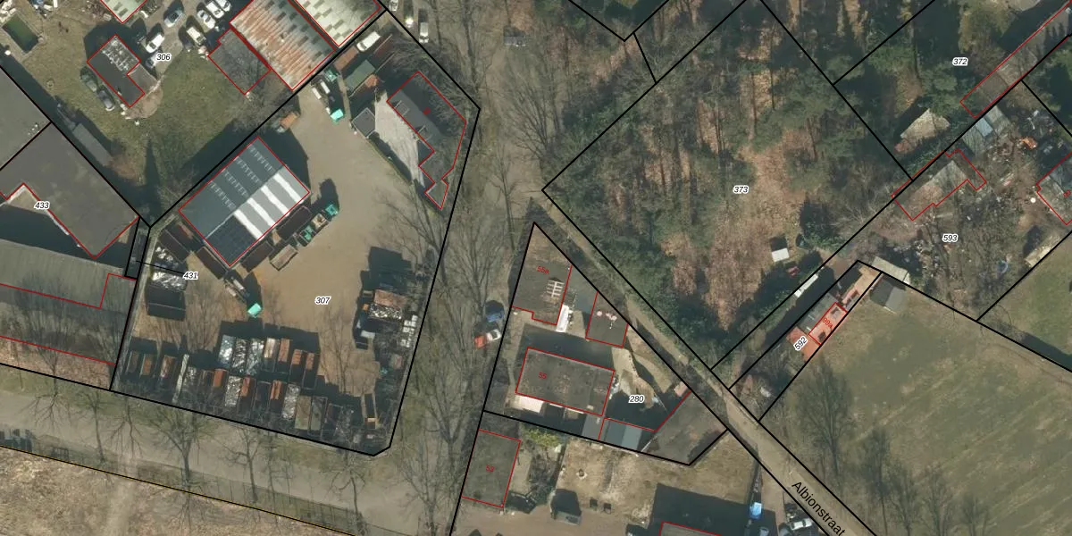 Het perceel waarop Albionstraat 55-a staat heeft een oppervlakte van 1003 m². Dit is een zeer groot perceel. De perceeloppervlakte wordt geregistreerd door het Kadaster. Gedetailleerde informatie over de maten van dit perceel kunt u vinden in het rapport Kadastrale kaart met maatvoering van Albionstraat 55-a.