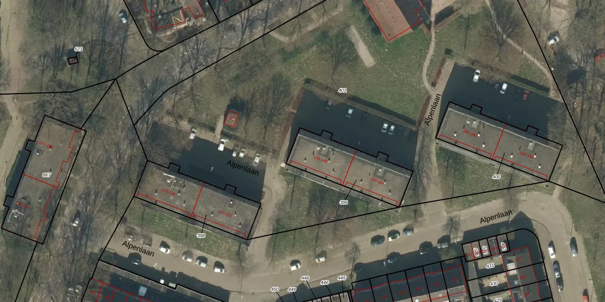 Het perceel waarop Alpenlaan 138 staat heeft een oppervlakte van 526 m². Dit is een groot perceel. De perceeloppervlakte wordt geregistreerd door het Kadaster. Gedetailleerde informatie over de maten van dit perceel kunt u vinden in het rapport Kadastrale kaart met maatvoering van Alpenlaan 138.