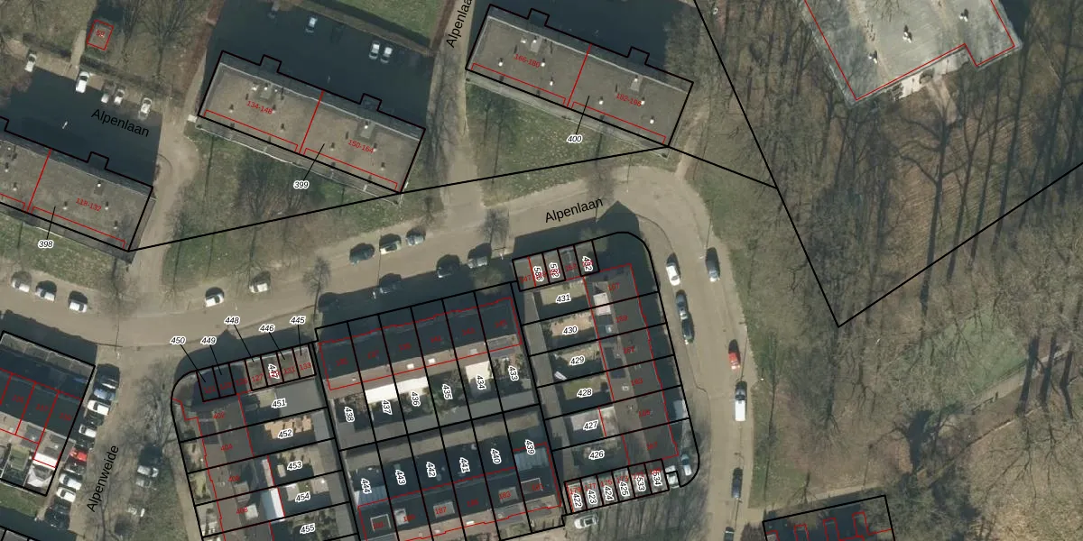 Het perceel waarop Alpenlaan 149 staat heeft een oppervlakte van 37 m². Dit is een klein perceel. De perceeloppervlakte wordt geregistreerd door het Kadaster. Gedetailleerde informatie over de maten van dit perceel kunt u vinden in het rapport Kadastrale kaart met maatvoering van Alpenlaan 149.