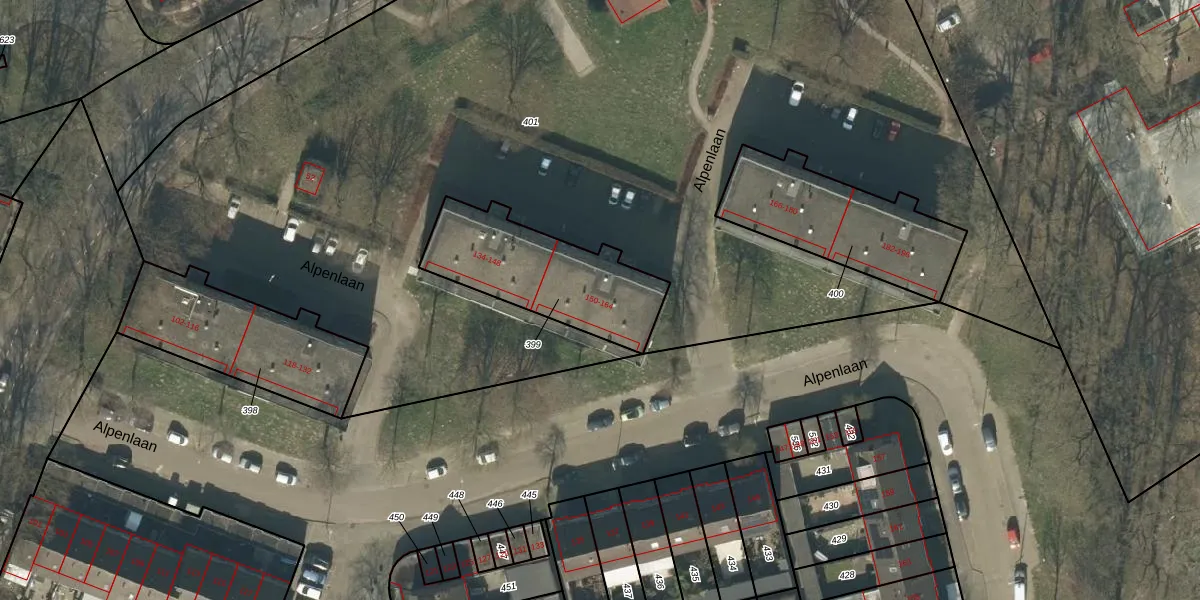 Het perceel waarop Alpenlaan 156 staat heeft een oppervlakte van 526 m². Dit is een groot perceel. De perceeloppervlakte wordt geregistreerd door het Kadaster. Gedetailleerde informatie over de maten van dit perceel kunt u vinden in het rapport Kadastrale kaart met maatvoering van Alpenlaan 156.