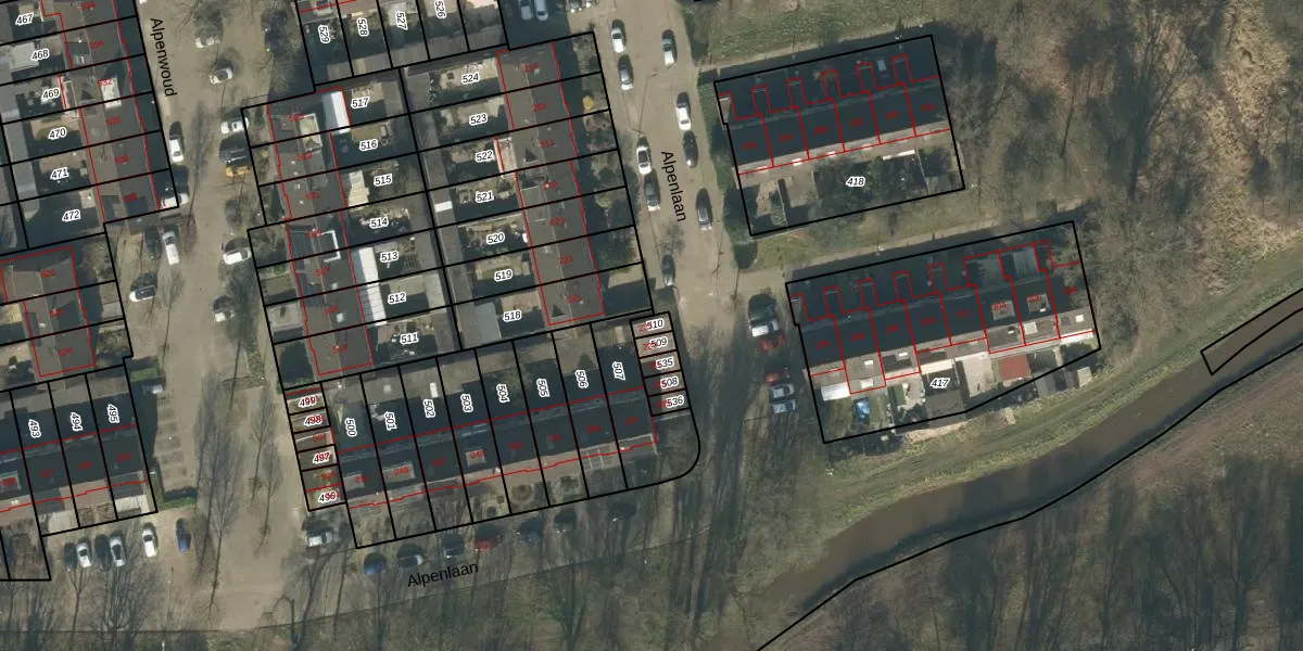 Het perceel waarop Alpenlaan 227 staat heeft een oppervlakte van 19 m². Dit is een klein perceel. De perceeloppervlakte wordt geregistreerd door het Kadaster. Gedetailleerde informatie over de maten van dit perceel kunt u vinden in het rapport Kadastrale kaart met maatvoering van Alpenlaan 227.