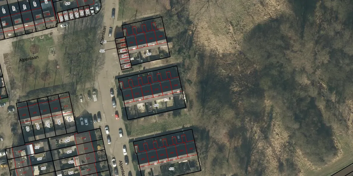 Alpenlaan 280 is gelegen op kadastraal perceel TBG01W419. Deze kadastrale aanduiding is uniek en wordt gebruikt door het Kadaster om eigendomsrechten en andere zakelijke rechten vast te leggen. Het perceel maakt onderdeel uit van de kadastrale gemeente Tilburg.