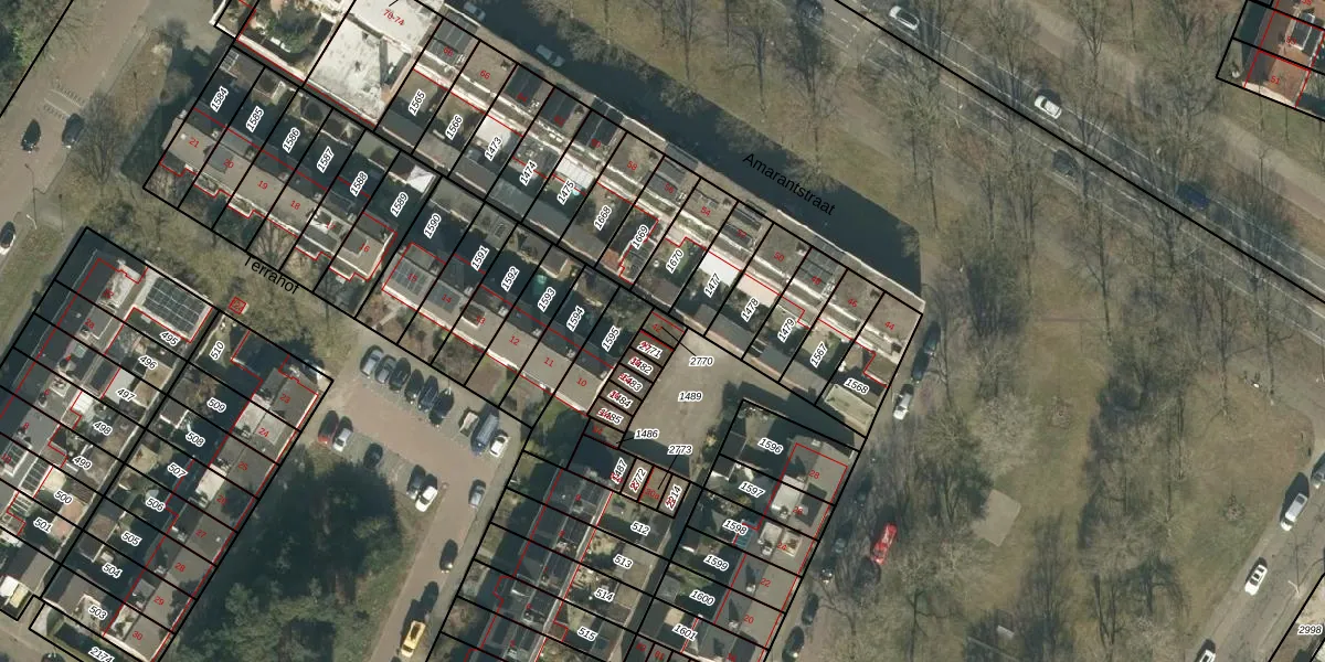 Gebruik de zoekbalk of klik op een perceel voor informatie over de adressen binnen dit perceel.