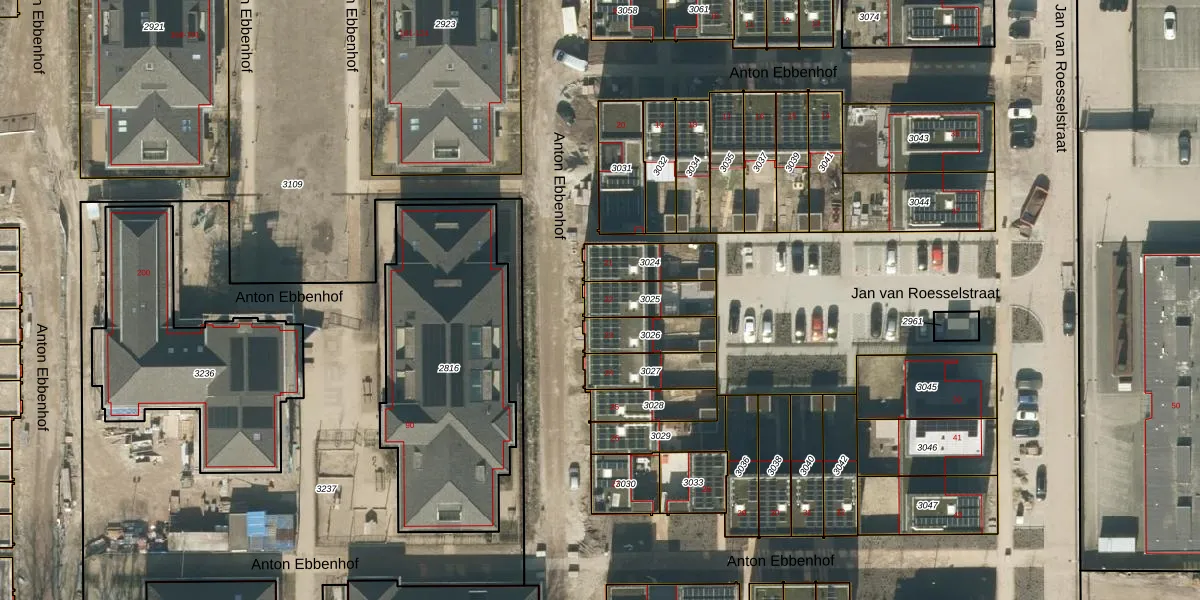 Gebruik de zoekbalk of klik op een perceel voor informatie over de adressen binnen dit perceel.