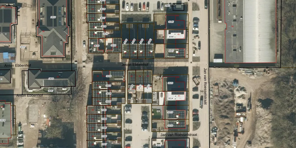 Gebruik de zoekbalk of klik op een perceel voor informatie over de adressen binnen dit perceel.