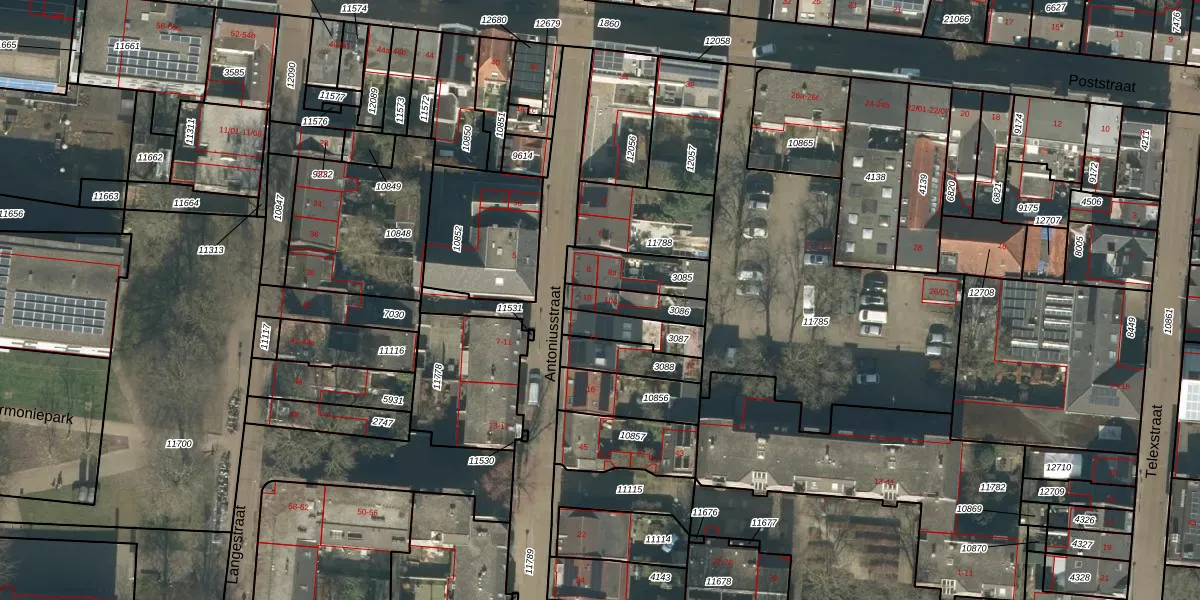 Het perceel waarop Antoniusstraat 10-a staat heeft een oppervlakte van 100 m². Dit is een middelgroot perceel. De perceeloppervlakte wordt geregistreerd door het Kadaster. Gedetailleerde informatie over de maten van dit perceel kunt u vinden in het rapport Kadastrale kaart met maatvoering van Antoniusstraat 10-a.