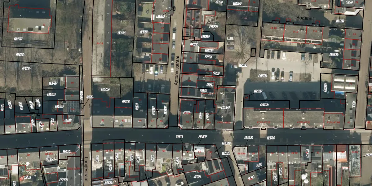 Het perceel waarop Antoniusstraat 38 staat heeft een oppervlakte van 112 m². Dit is een middelgroot perceel. De perceeloppervlakte wordt geregistreerd door het Kadaster. Gedetailleerde informatie over de maten van dit perceel kunt u vinden in het rapport Kadastrale kaart met maatvoering van Antoniusstraat 38.