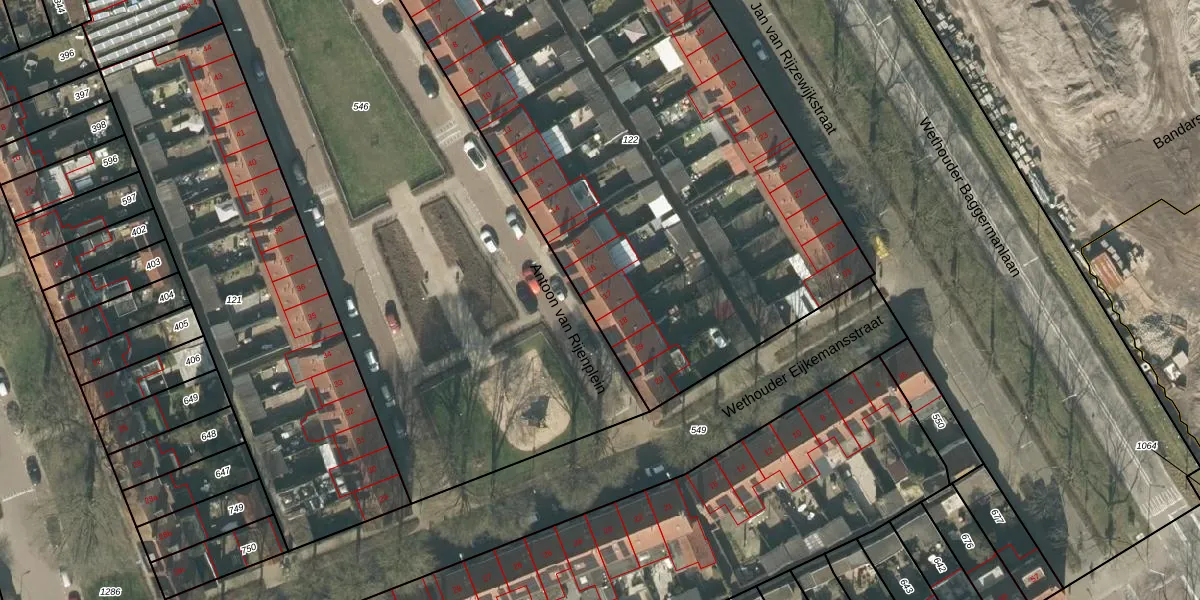 Het perceel waarop Antoon van Rijenplein 17 staat heeft een oppervlakte van 3664 m². Dit is een zeer groot perceel. De perceeloppervlakte wordt geregistreerd door het Kadaster. Gedetailleerde informatie over de maten van dit perceel kunt u vinden in het rapport Kadastrale kaart met maatvoering van Antoon van Rijenplein 17.