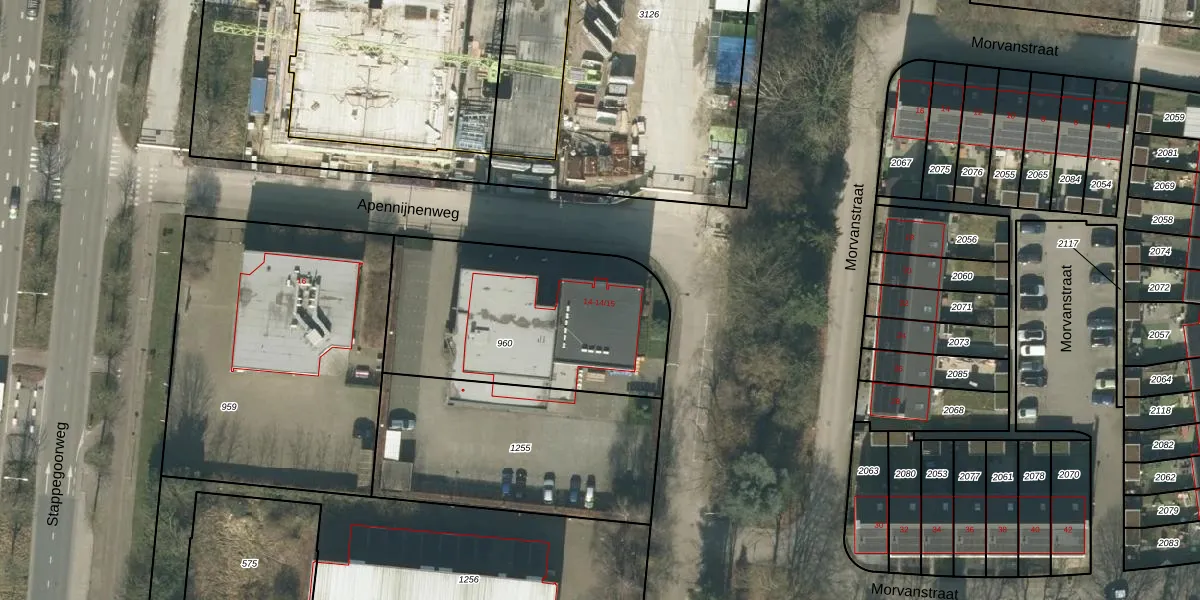 Apennijnenweg 14 is gelegen op kadastraal perceel TBG01Z960. Deze kadastrale aanduiding is uniek en wordt gebruikt door het Kadaster om eigendomsrechten en andere zakelijke rechten vast te leggen. Het perceel maakt onderdeel uit van de kadastrale gemeente Tilburg.