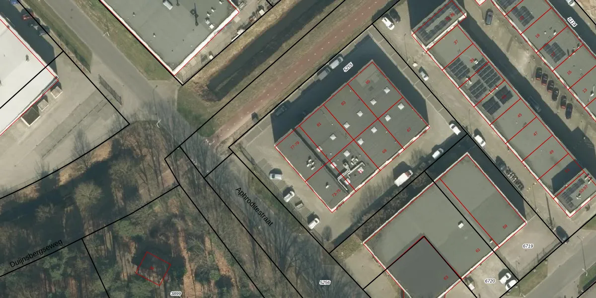 Aphroditestraat 79 is gelegen op kadastraal perceel TBG01F5255. Deze kadastrale aanduiding is uniek en wordt gebruikt door het Kadaster om eigendomsrechten en andere zakelijke rechten vast te leggen. Het perceel maakt onderdeel uit van de kadastrale gemeente Tilburg.
