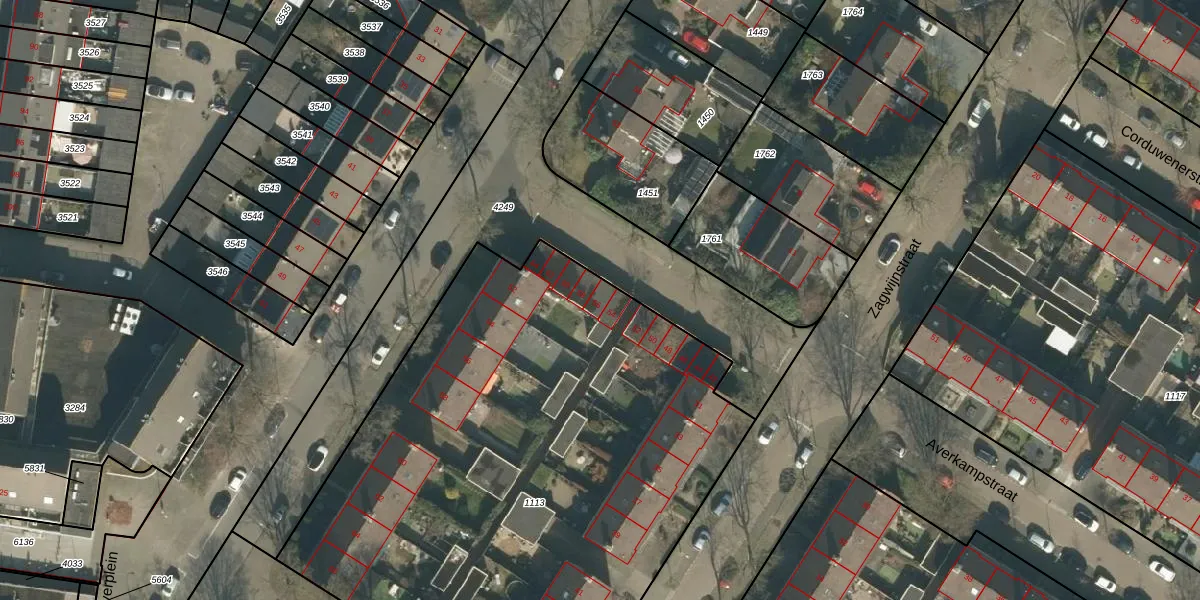 Het perceel waarop Averkampstraat 56 staat heeft een oppervlakte van 3677 m². Dit is een zeer groot perceel. De perceeloppervlakte wordt geregistreerd door het Kadaster. Gedetailleerde informatie over de maten van dit perceel kunt u vinden in het rapport Kadastrale kaart met maatvoering van Averkampstraat 56.