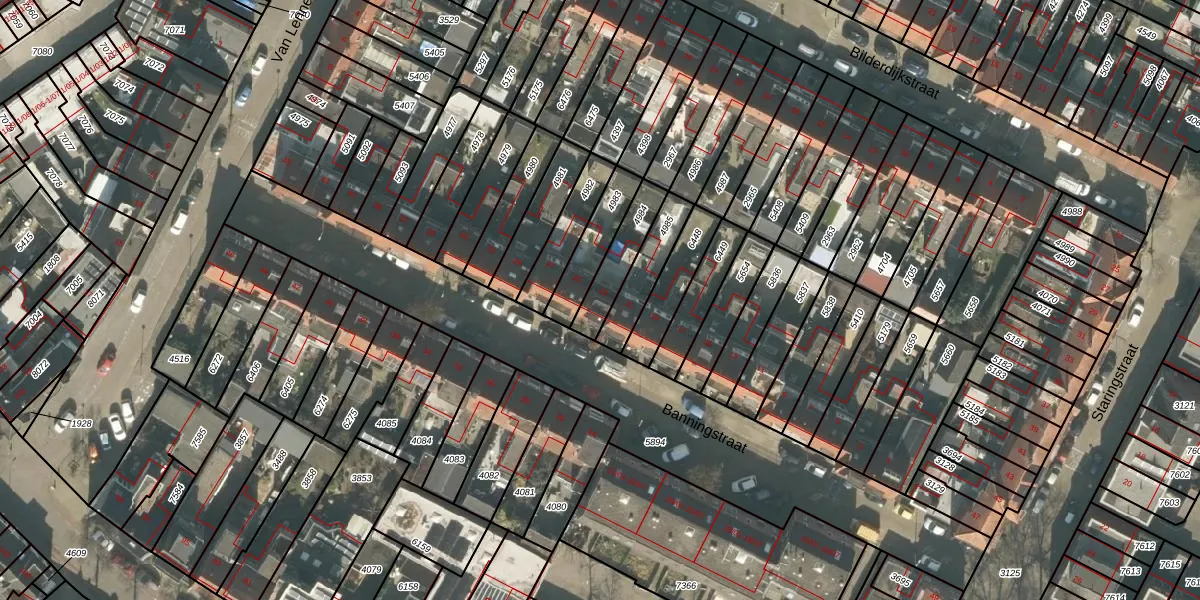 Het perceel waarop Banningstraat 23 staat heeft een oppervlakte van 138 m². Dit is een middelgroot perceel. De perceeloppervlakte wordt geregistreerd door het Kadaster. Gedetailleerde informatie over de maten van dit perceel kunt u vinden in het rapport Kadastrale kaart met maatvoering van Banningstraat 23.
