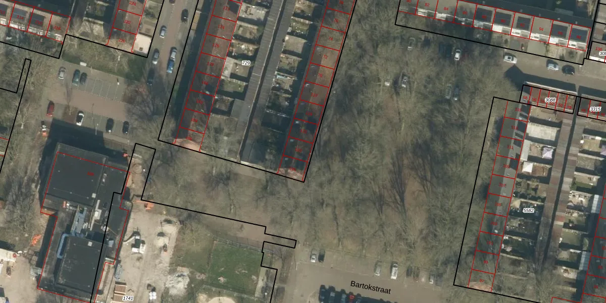 Het perceel waarop Bartokstraat 123 staat heeft een oppervlakte van 3171 m². Dit is een zeer groot perceel. De perceeloppervlakte wordt geregistreerd door het Kadaster. Gedetailleerde informatie over de maten van dit perceel kunt u vinden in het rapport Kadastrale kaart met maatvoering van Bartokstraat 123.
