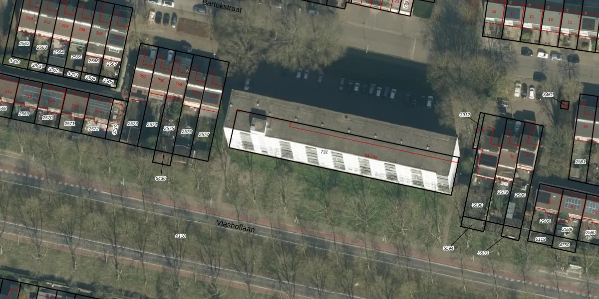 Het perceel waarop Bartokstraat 132 staat heeft een oppervlakte van 979 m². Dit is een groot perceel. De perceeloppervlakte wordt geregistreerd door het Kadaster. Gedetailleerde informatie over de maten van dit perceel kunt u vinden in het rapport Kadastrale kaart met maatvoering van Bartokstraat 132.