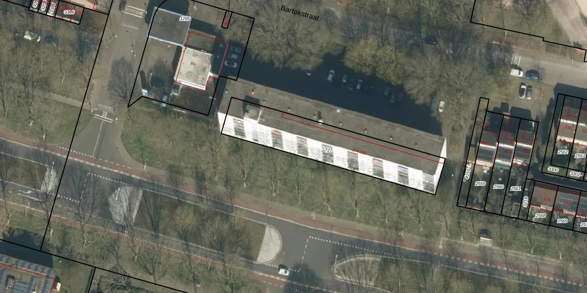 Het perceel waarop Bartokstraat 306 staat heeft een oppervlakte van 979 m². Dit is een groot perceel. De perceeloppervlakte wordt geregistreerd door het Kadaster. Gedetailleerde informatie over de maten van dit perceel kunt u vinden in het rapport Kadastrale kaart met maatvoering van Bartokstraat 306.