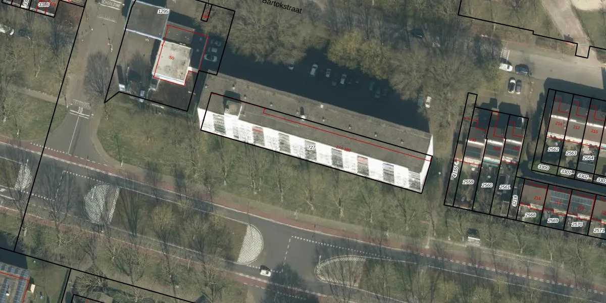 Het perceel waarop Bartokstraat 308 staat heeft een oppervlakte van 979 m². Dit is een groot perceel. De perceeloppervlakte wordt geregistreerd door het Kadaster. Gedetailleerde informatie over de maten van dit perceel kunt u vinden in het rapport Kadastrale kaart met maatvoering van Bartokstraat 308.