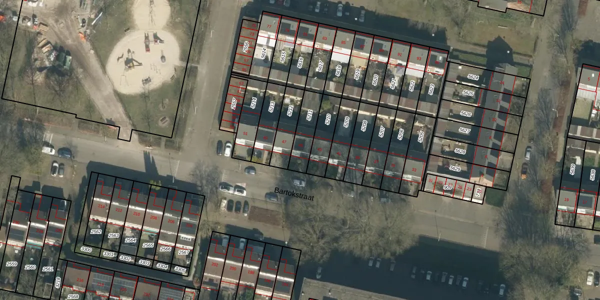 Het perceel waarop Bartokstraat 45 staat heeft een oppervlakte van 171 m². Dit is een middelgroot perceel. De perceeloppervlakte wordt geregistreerd door het Kadaster. Gedetailleerde informatie over de maten van dit perceel kunt u vinden in het rapport Kadastrale kaart met maatvoering van Bartokstraat 45.
