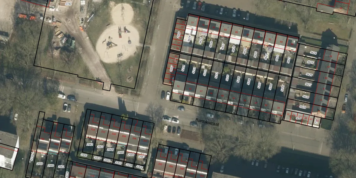 Gebruik de zoekbalk of klik op een perceel voor informatie over de adressen binnen dit perceel.