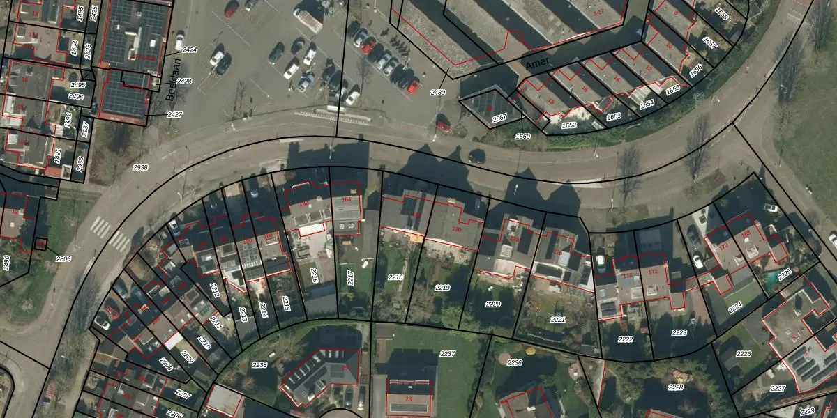 Beeklaan 182 is gelegen op kadastraal perceel TBG01AA2218. Deze kadastrale aanduiding is uniek en wordt gebruikt door het Kadaster om eigendomsrechten en andere zakelijke rechten vast te leggen. Het perceel maakt onderdeel uit van de kadastrale gemeente Tilburg.