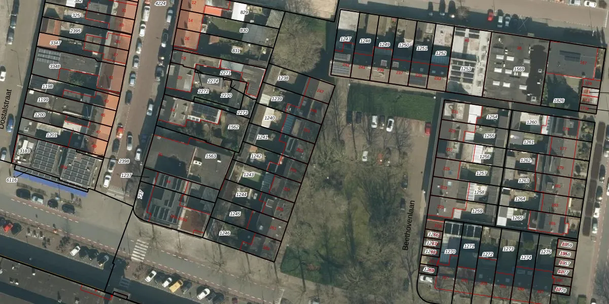 Het perceel waarop Beethovenlaan 253 staat heeft een oppervlakte van 155 m². Dit is een middelgroot perceel. De perceeloppervlakte wordt geregistreerd door het Kadaster. Gedetailleerde informatie over de maten van dit perceel kunt u vinden in het rapport Kadastrale kaart met maatvoering van Beethovenlaan 253.