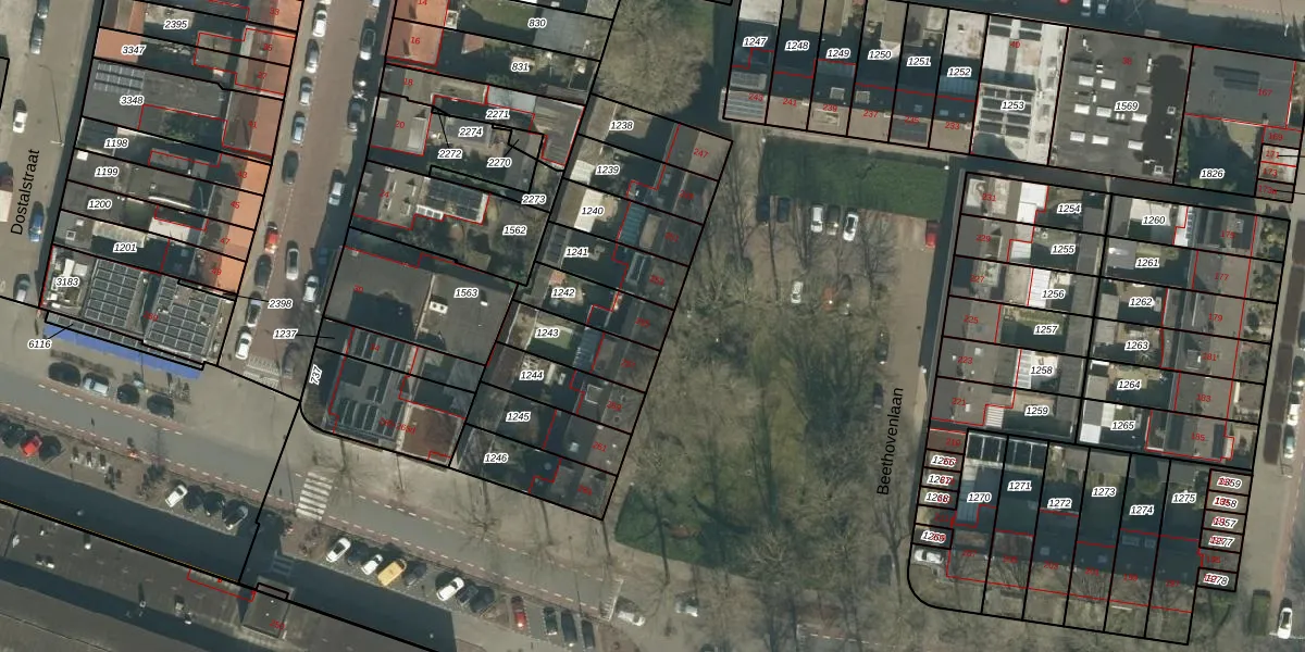 Beethovenlaan 255 is gelegen op kadastraal perceel TBG01T1242. Deze kadastrale aanduiding is uniek en wordt gebruikt door het Kadaster om eigendomsrechten en andere zakelijke rechten vast te leggen. Het perceel maakt onderdeel uit van de kadastrale gemeente Tilburg.