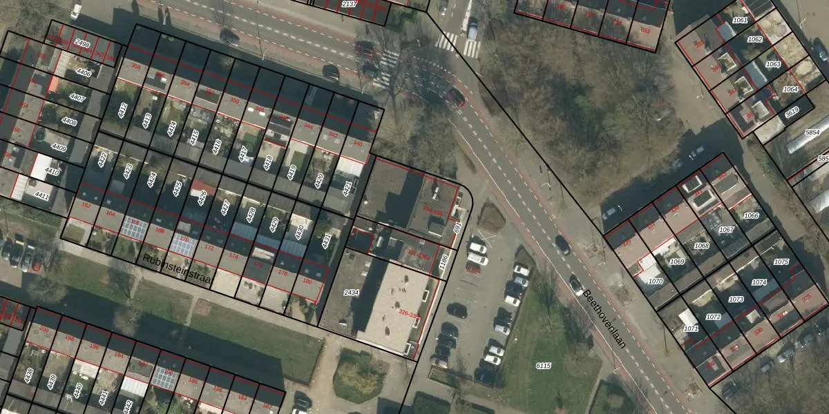 Het perceel waarop Beethovenlaan 338 staat heeft een oppervlakte van 406 m². Dit is een groot perceel. De perceeloppervlakte wordt geregistreerd door het Kadaster. Gedetailleerde informatie over de maten van dit perceel kunt u vinden in het rapport Kadastrale kaart met maatvoering van Beethovenlaan 338.