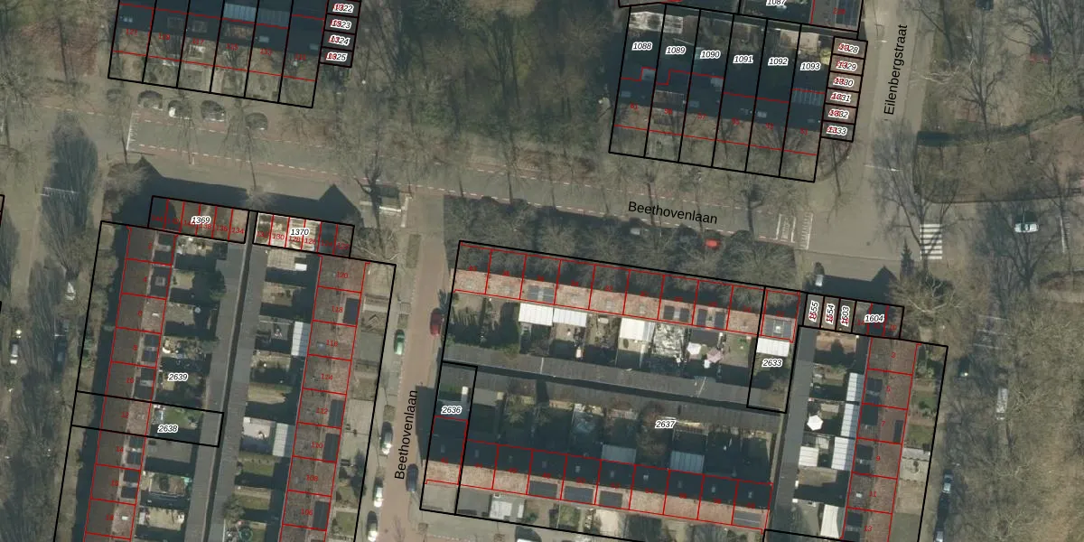 Beethovenlaan 36 is gelegen op kadastraal perceel TBG01T2637. Deze kadastrale aanduiding is uniek en wordt gebruikt door het Kadaster om eigendomsrechten en andere zakelijke rechten vast te leggen. Het perceel maakt onderdeel uit van de kadastrale gemeente Tilburg.