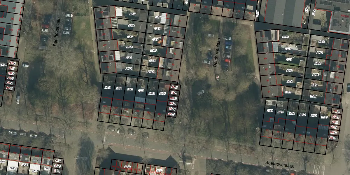 Beethovenlaan 99 is gelegen op kadastraal perceel TBG01T1320. Deze kadastrale aanduiding is uniek en wordt gebruikt door het Kadaster om eigendomsrechten en andere zakelijke rechten vast te leggen. Het perceel maakt onderdeel uit van de kadastrale gemeente Tilburg.