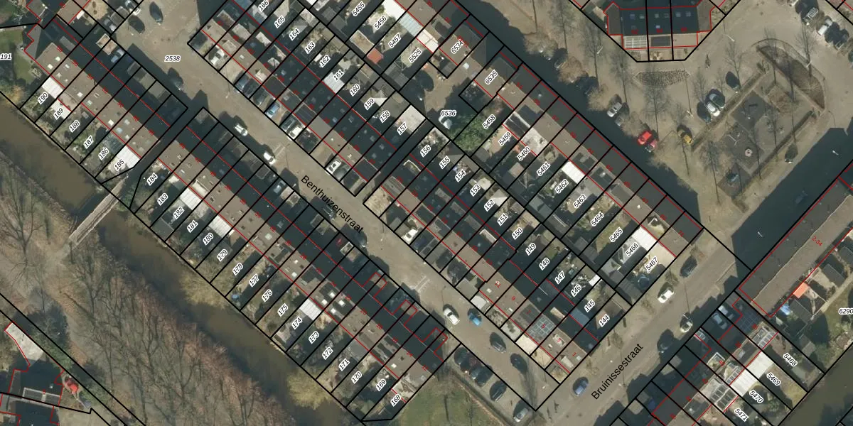 Gebruik de zoekbalk of klik op een perceel voor informatie over de adressen binnen dit perceel.