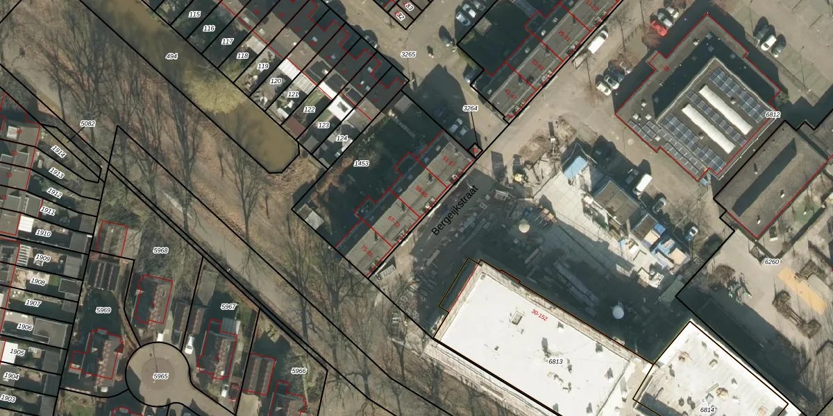 Het perceel waarop Bergeijkstraat 65 staat heeft een oppervlakte van 963 m². Dit is een groot perceel. De perceeloppervlakte wordt geregistreerd door het Kadaster. Gedetailleerde informatie over de maten van dit perceel kunt u vinden in het rapport Kadastrale kaart met maatvoering van Bergeijkstraat 65.